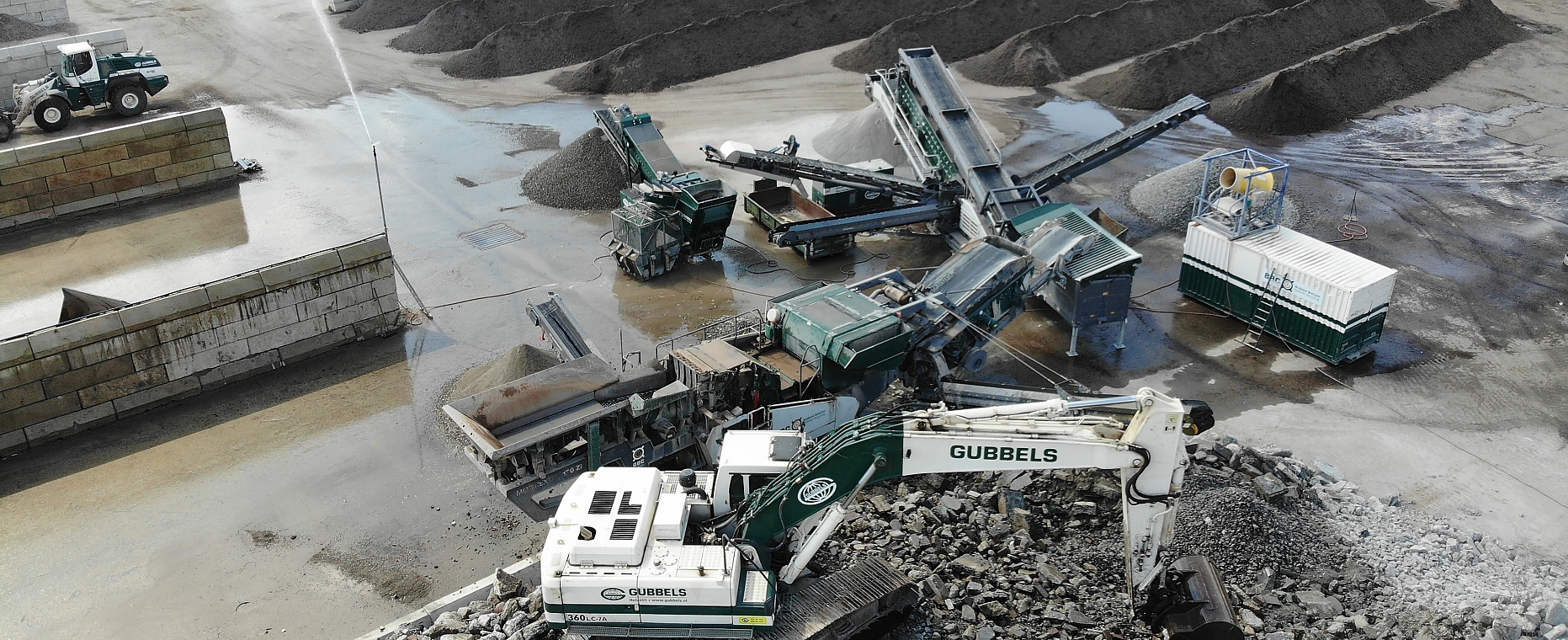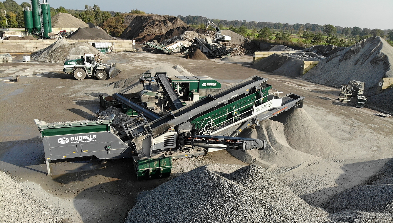 Hier wordt de grove puin gebroken, gewassen en gezeefd tot een herbruikbaar betongranulaat. Het betongranulaat met een korrelgrootte van 4-22mm wordt geleverd aan diverse betoncentrales. Zij gebruiken het gerecyclede granulaat als vervanger van natuurgrind voor de betonproductie. Zo beperken we samen het gebruik van natuurlijke producten en minimaliseren we reststoffen.